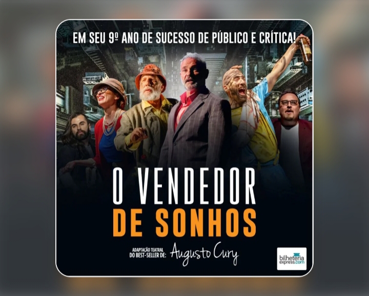 O livro O Vendedor de Sonhos já foi traduzido para mais de 60 idiomas e também virou filme – e é a primeira obra de Augusto Cury (o psiquiatra mais lido no mundo atualmente) a receber uma adaptação para o teatro.